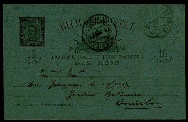 Bilhete Postal, 1895 Nov. 22, Porto, [a] Dr. Joaquim de Mariz, Coimbra