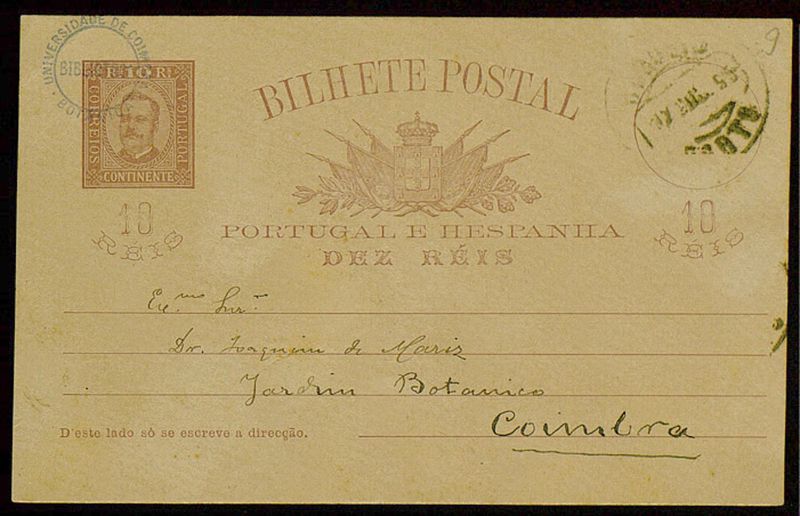 Bilhete Postal, 1895 Jul. 16, Porto [a] Dr. Joaquim de Mariz, Coimbra