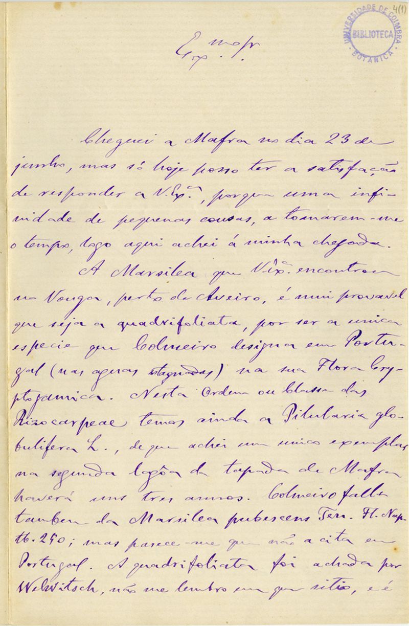 [Carta], 1874 Jul. 1, Mafra, [a Júlio Henriques, Coimbra]