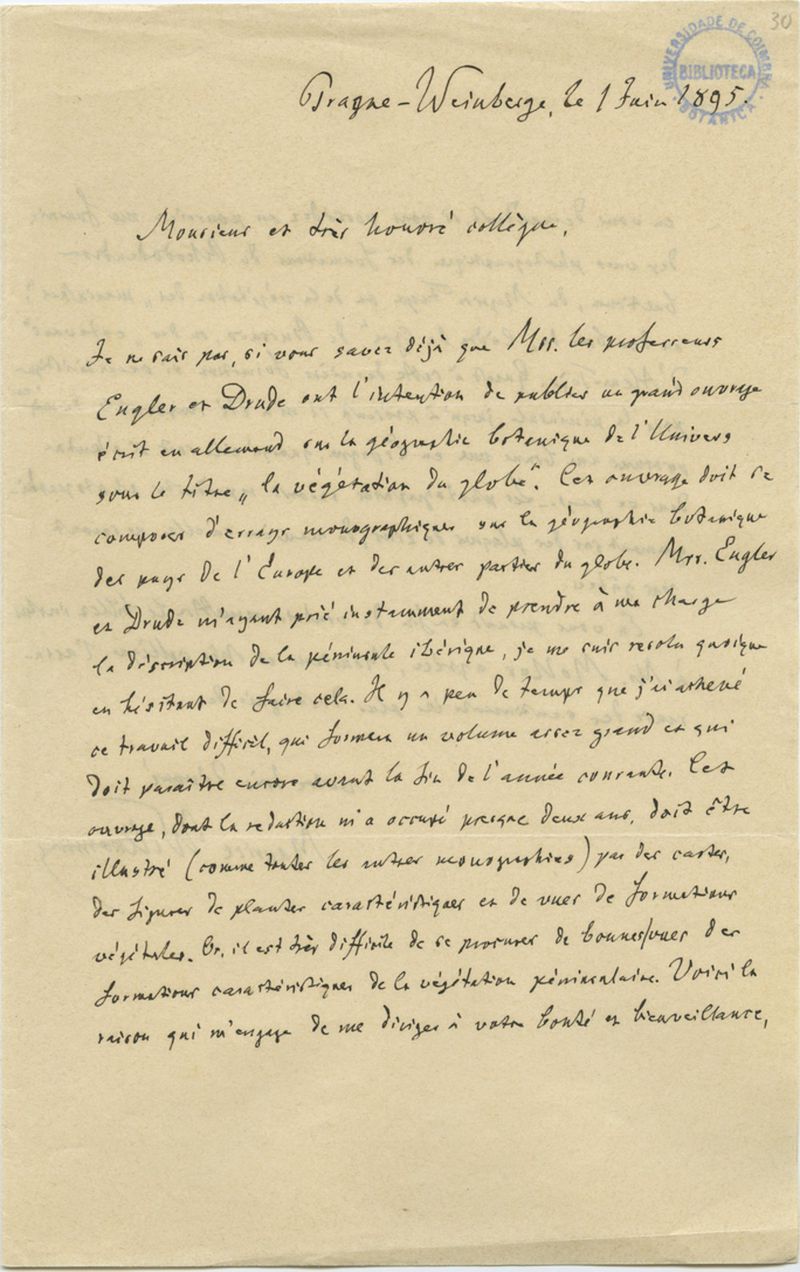 [Lettre], 1895 jun. 1, Weinberg, [a Júlio Henriques, Coimbra]