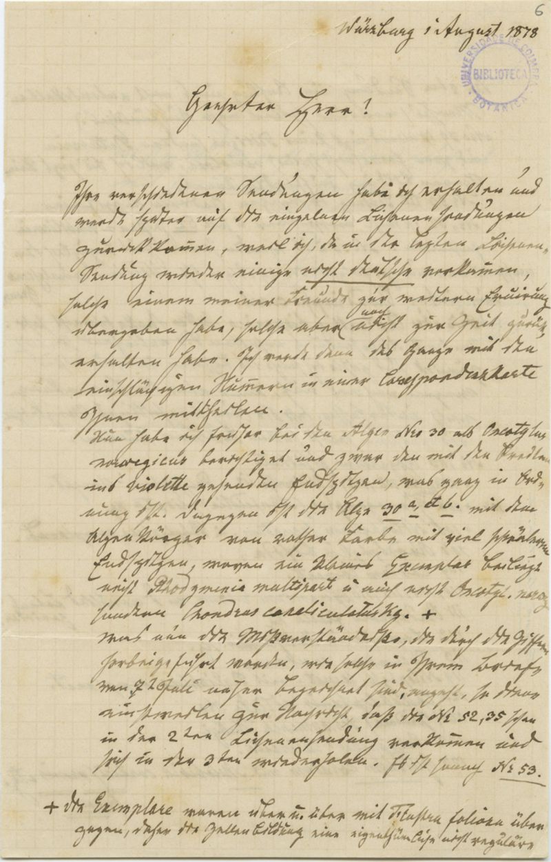 [Brief], 1878 Aug. 1, Würzburg, [an] Herr[n Adolfo F. Möller, Coimbra]