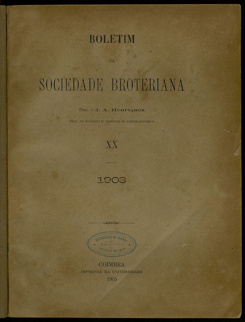 Boletim da Sociedade Broteriana. - S. 1, Vol. 20