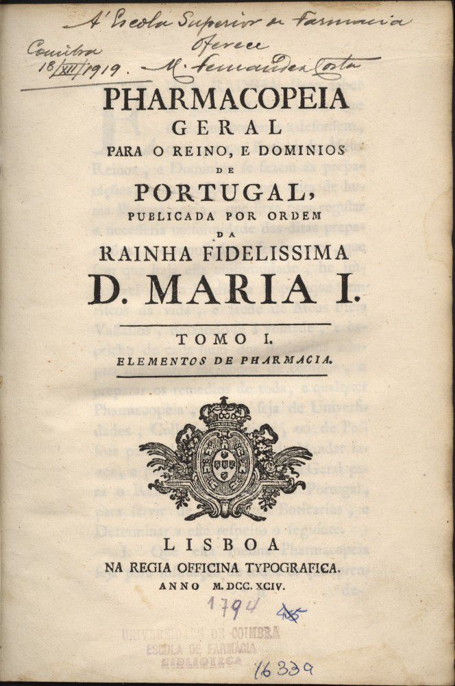 Pharmacopeia geral para o reino, e dominios de Portugal (Tomo I)
