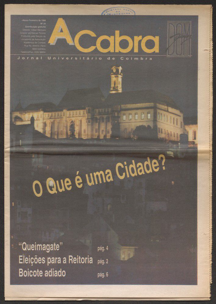 A cabra : jornal universitário de Coimbra - A. 8, n.º34 (fev. 1998)