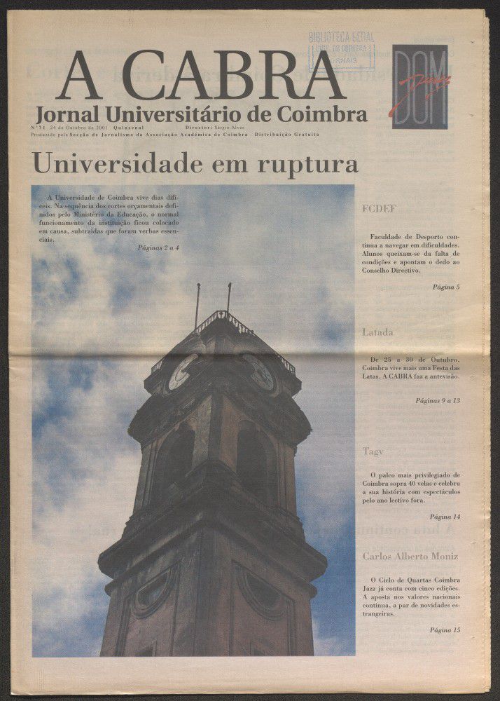 A cabra : jornal universitário de Coimbra - A. 11, n.º71 (out. 2001)
