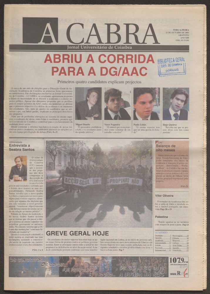 A cabra : jornal universitário de Coimbra - A. 13, n.º101 (out. 2003)