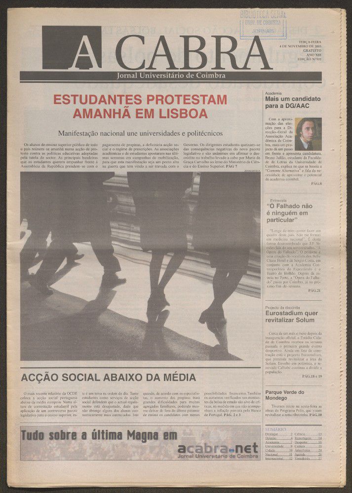 A cabra : jornal universitário de Coimbra - A. 13, n.º102 (nov. 2003)