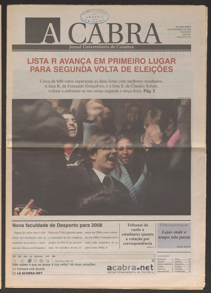A cabra : jornal universitário de Coimbra - A. 14, n.º123 (dez. 2004)
