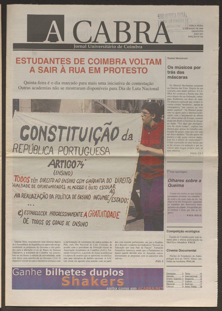 A cabra : jornal universitário de Coimbra - A. 15, n.º133 (mai. 2005)