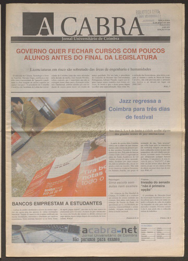 A cabra : jornal universitário de Coimbra - A. 15, n.º134 (mai. 2005)