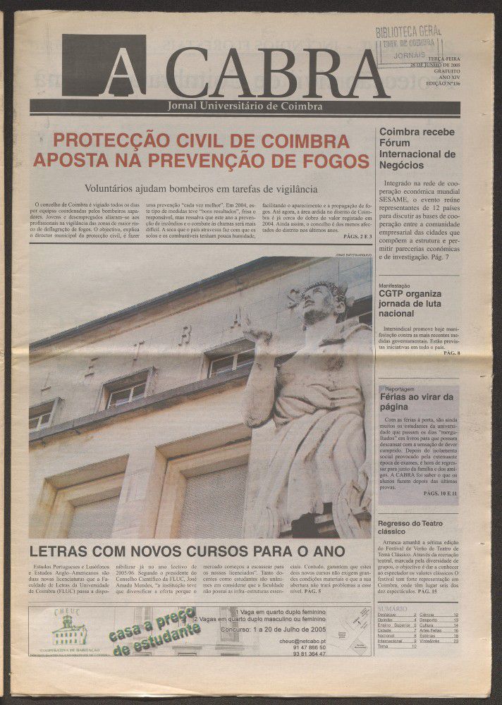 A cabra : jornal universitário de Coimbra - A. 15, n.º136 (jun. 2005)
