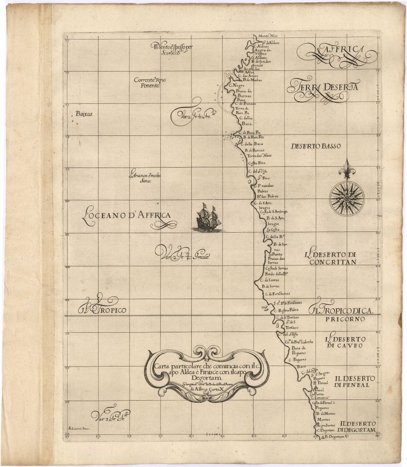 Carta particolare che comincia con il capo Aldea è finisce con il capo Degortam : la longitudine comincia da i'isola di Pico d'Asores di Affrica Carta X Lº6º