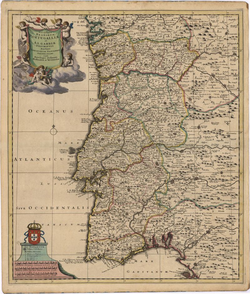 Inclui no canto superior esquerdo anjos que rodeiam o título, no canto inferior esquerdo o escudo de Portugal e a legenda.