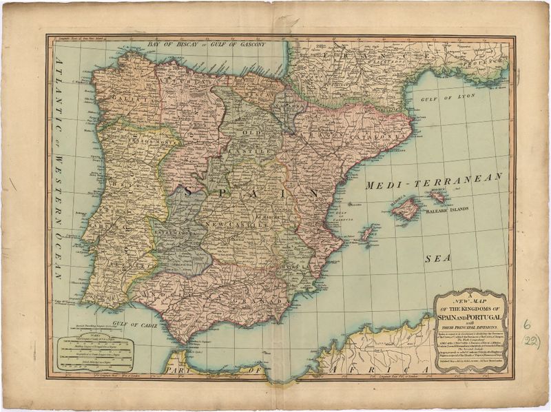 A new map of the kingdoms of Spain and Portugal with their principals divisions.