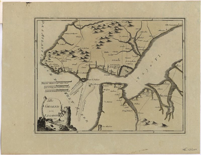 Escala gráfica: 2 Deutsche Meilen 15 auf einen Grad., 2 Span:u Portug: gem Land. M. 17 1/2 a. 1 Grad., 2 Spanische Seemeilen 9.0 auf einen Grad.