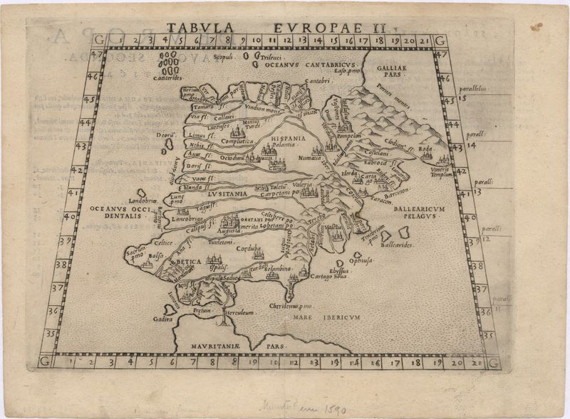 Mapa provavelmente publicado em "Geographia" de Ptolomeo editada por G. Ruscelli e impressa por G. Ziletti en Veneza, 1564, 1574 (de acordo com dados da Biblioteca Nacional de Espanha).