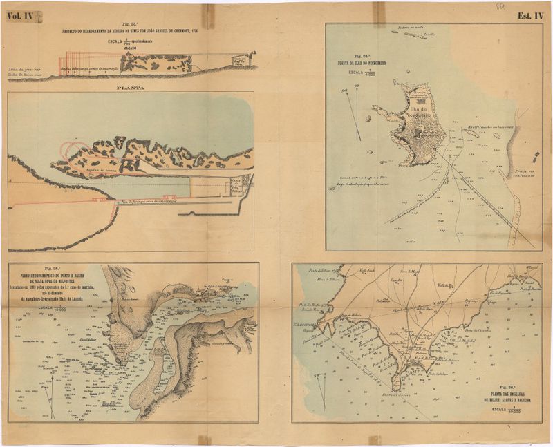 Inclui: Planta da Ilha do Pecegueiro. - Escala 1:4 000. - 24x23 cm ; Plano Hydrographico do porto e barra de Villa Nova de Milfontes / levantado em 1899 pelos aspirantes do 3º anno de marinha, sob direcção do engenheiro hydrographo Hugo de Lacerda. - Escala 1:10 000. - 17x26 cm ; Planta das enseadas de Belixe, Sagres e Balieira. - Escala 1: 50 000. - 17x26 cm.