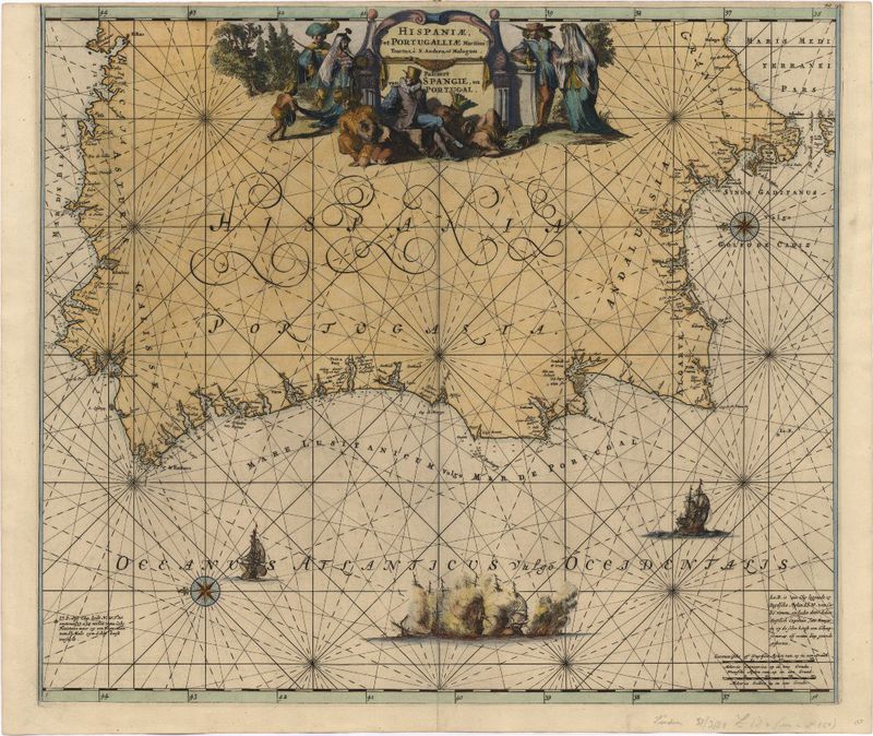 Hispaniae, et Portugalliae Maritimi Tractus à S. Andero ad Malagam = Pafcaert van Spangie, en Portugal