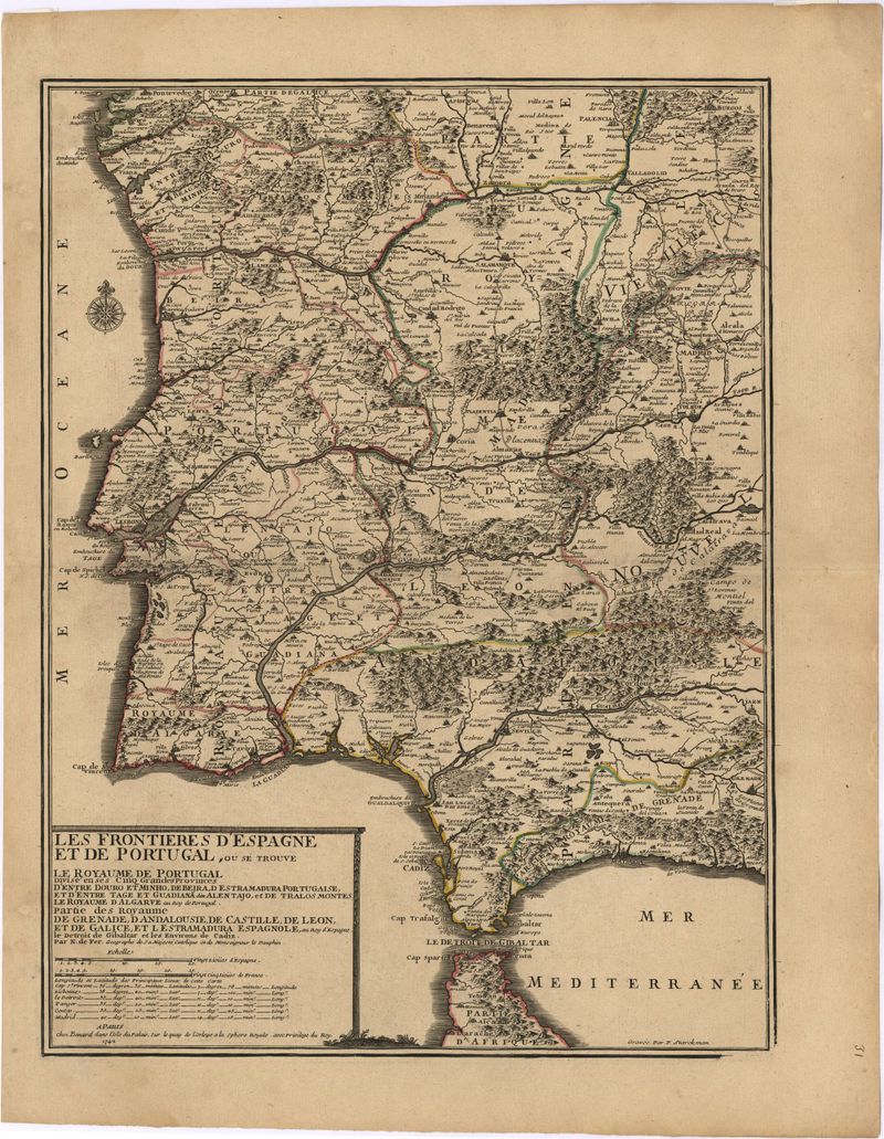 Les frontieres d'Espagne et de Portugal, ou se trouve le Royaume de Portugal divisé en ses cinq grandes provinces