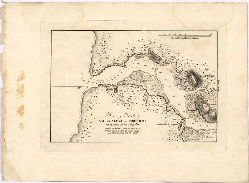 Barra y Puerto de Villanueva de Portimao en la costa de los Algarbes : situado en el Fuerte S. Juan en latit. N. de 37°9'15'' y long. de 2°10'45'' O de Cadiz
