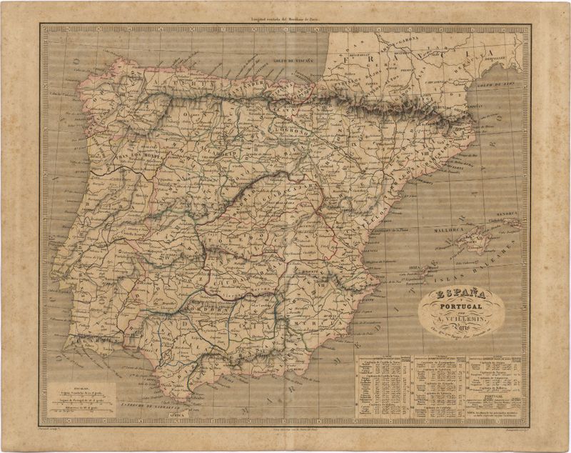 Escala gráfica: 20 Léguas Españolas de 20 al grado ; 24 Léguas de Portugal de 18 al grado ; 150 kilometros de III al grado.