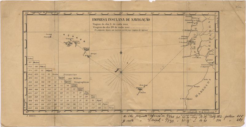 Empresa Insulana de Navegação : Viagem do dia 5 de cada mez : Viagem do dia 20 de cada mez : Os paquetes tocam nos mesmos pontos nas viagens de regresso