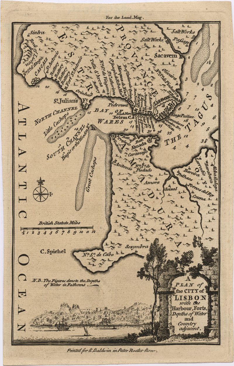A plan of the city of Lisbon with the Harbour, Forts, Depth of Water and Country adjacent : for the Lond. Mag.
