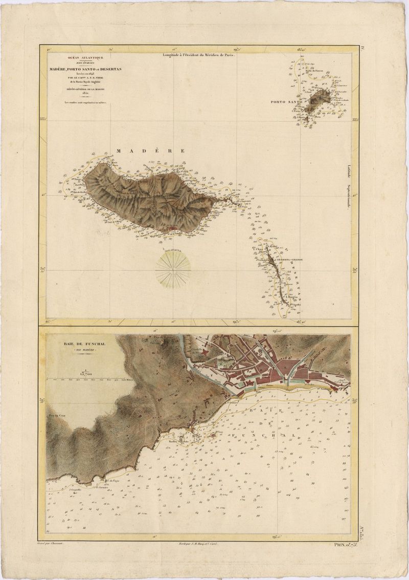 Margem inferior apresenta carta da Baia do Funchal à escala de 1:13700.