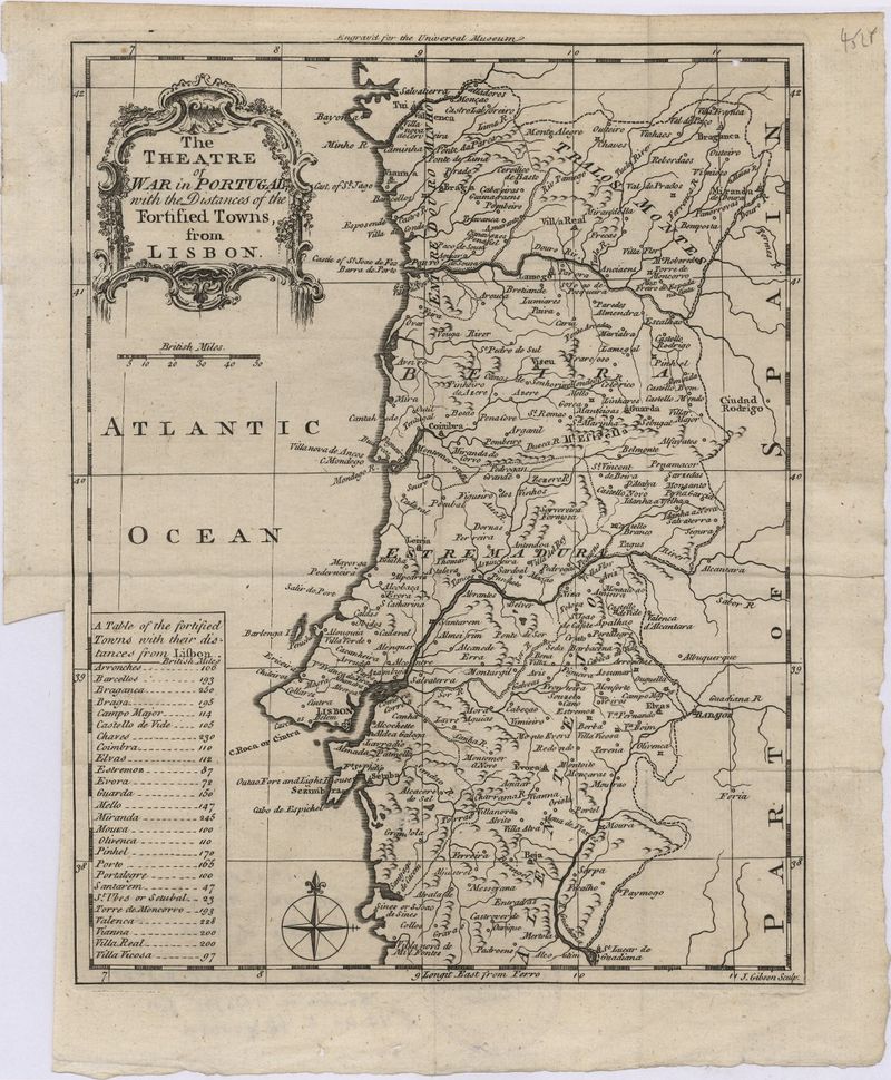 The theatre of war in Portugal with the distances of the fortified towns, from Lisbon