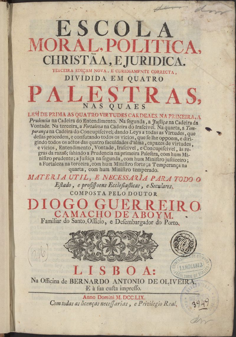 Lisboa : na Officina de Bernardo Antonio de Oliveira, 1759