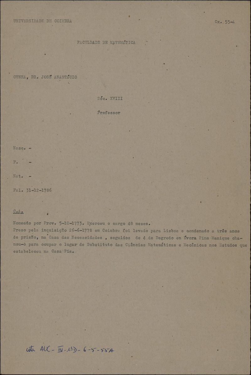O processo de professor contém 3 procurações para recebimento de vencimentos relativos à atividade docente exercida por José Anastácio da Cunha na Faculdade de Matemática da Universidade de Coimbra.