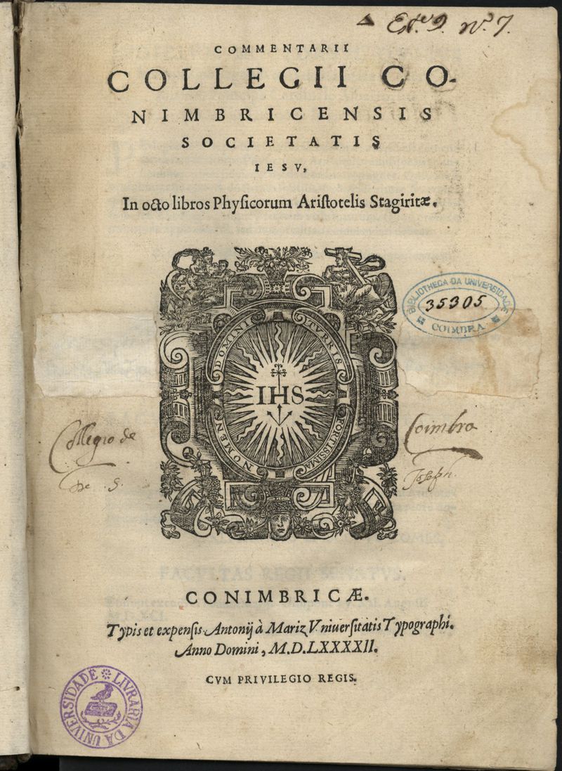 Commentarii Collegii Conimbricensis Societatis Jesu in octo libros Physicorum Aristotelis Stagiritae