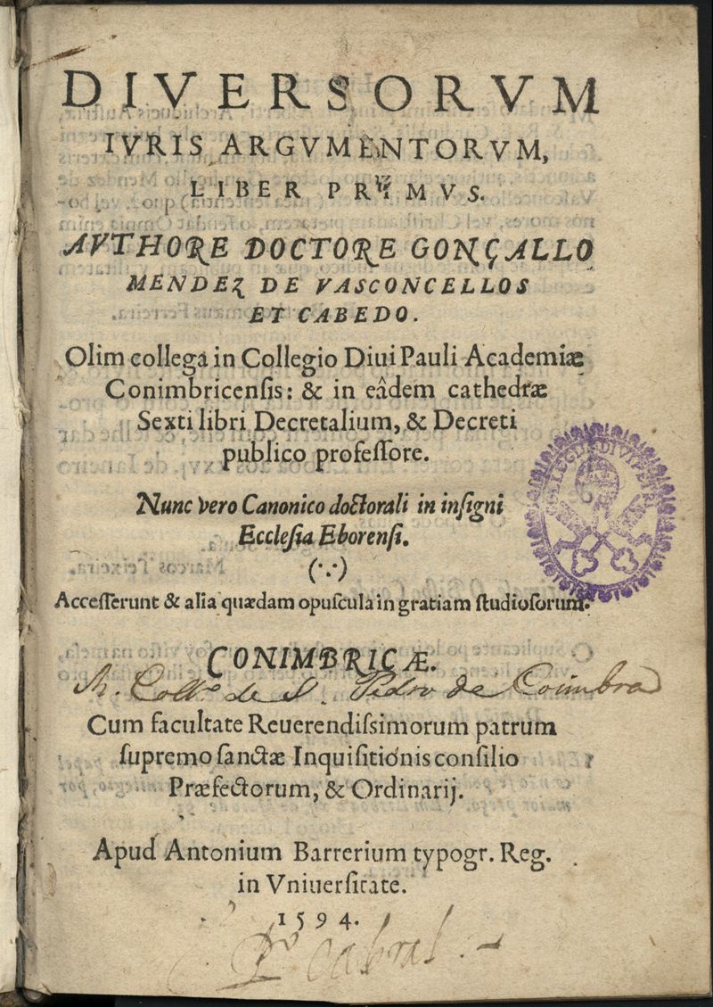 Conimbricae : apud Antonium Barrerium, 1594