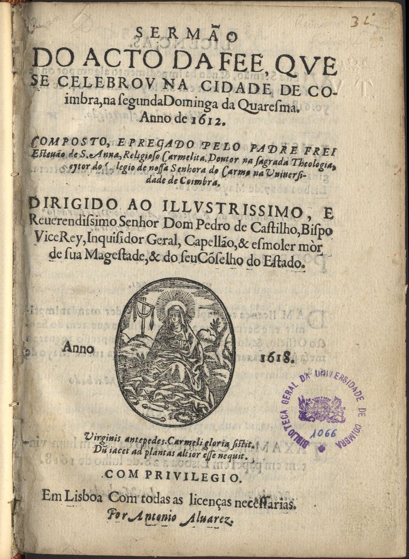 Referenciado em: Cassuto, A. Bibliogr. sermões autos da fé, Coimbra 1{u00AA}