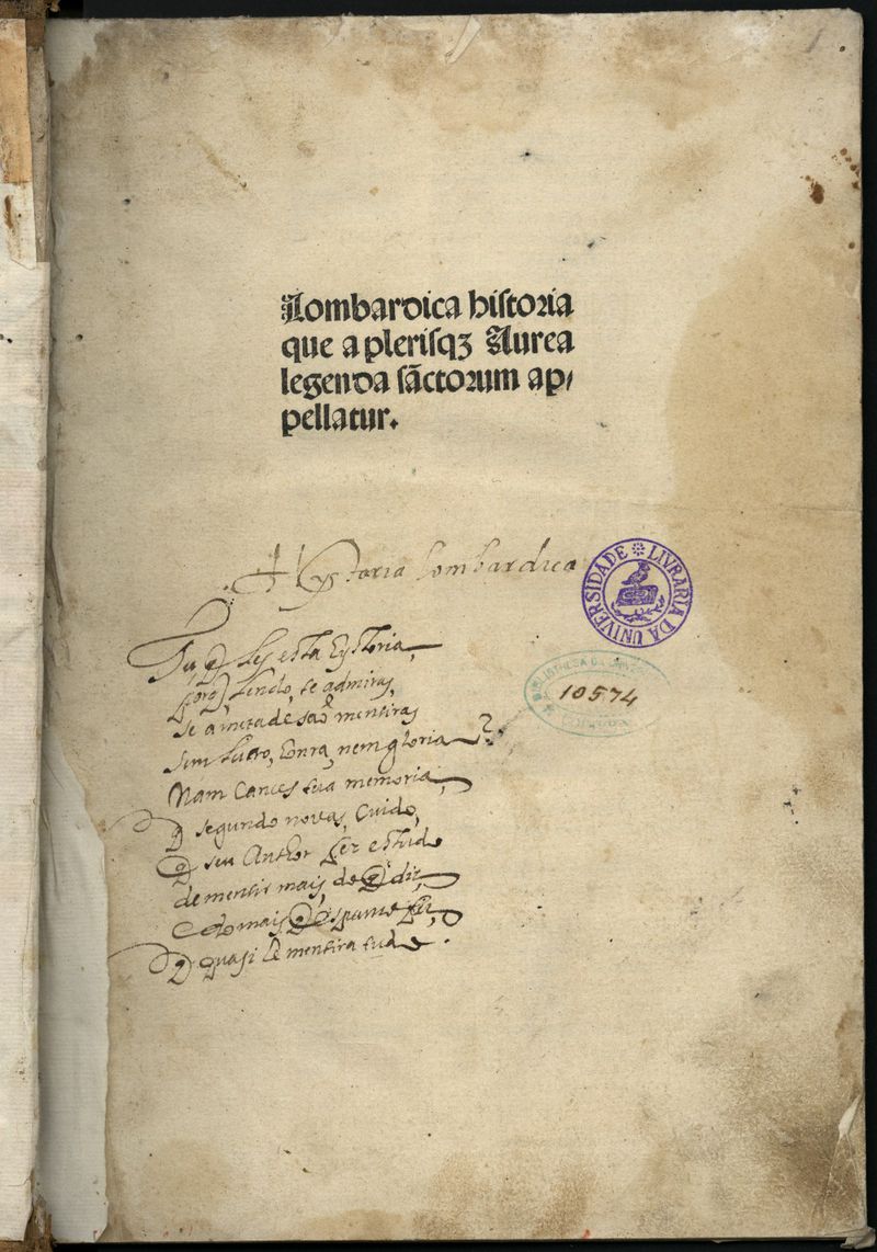 F. com a assin. N//8 em branco. - F. com as assin. m//5 e f//6 mut. ofendendo o texto. - Manchas de acidez, fungos e humidade. - Notas mss. - Pert.: "S. Francisco da Ponte"; "Fr. Ambroius uliponensis"; "Da Livraria de S. Francisco de Santarem". - Inic. cap. filigr. a azul e vermelho e inic. cap. a vermelho e a azul; caldeiroes a vermelho e a azul. - Enc. em pele com lombada grav. a ferros dourados em mau estado de conservacao.