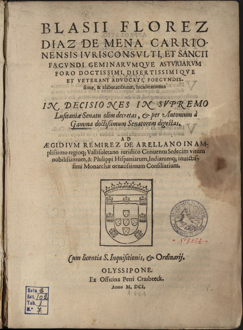 Blasii Florez Diaz de Mena... foecundissimique, & elaboratissimae, lucubrationes in Decisiones in Supremo Lusitaniae Senatu olim decretas, & per Antonium à Gamma... digestas...