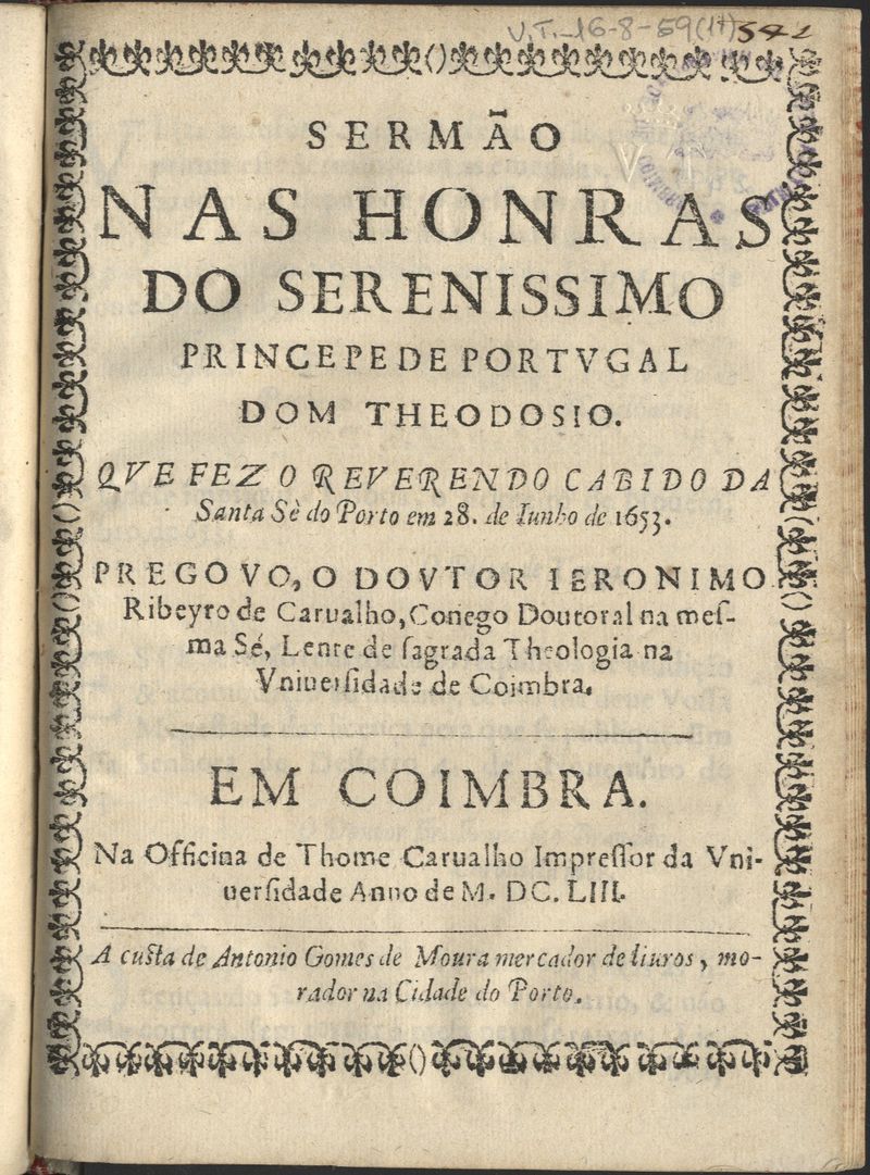 Em Coimbra : Na Officina de Thome Carvalho : a custa de Antonio Gomes de Moura, mercador de livros, 1653