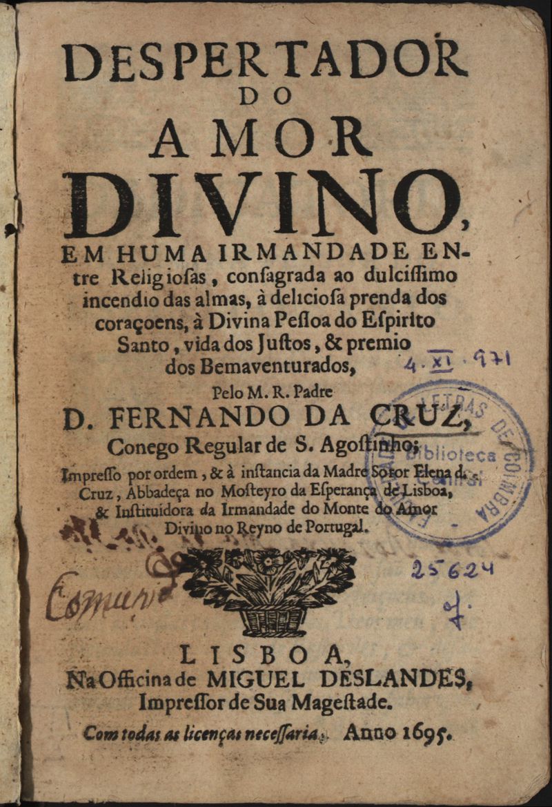 Despertador do amor divino em huma irmandade entre religiosas, consagrada... à Divina Pessoa do Espírito Santo, vida dos Justos & premio dos Bemaventurados