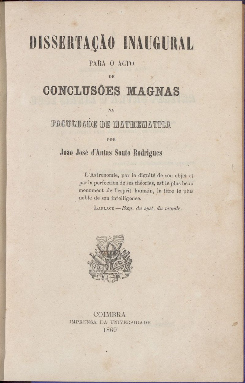 Dissertaçao inaugural para o acto de conclusões magnas na Faculdade Matemática da Universidade de Coimbra.