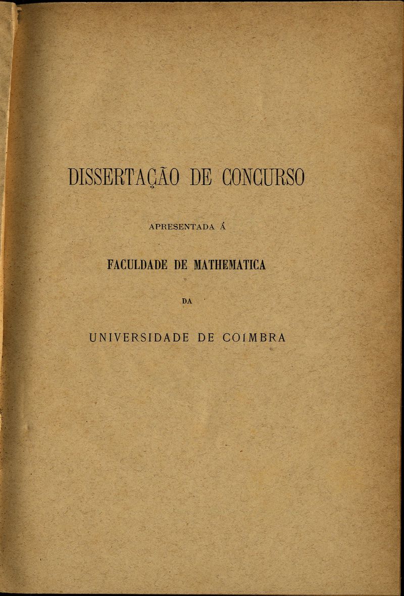 Dissertação de concurso apresentada á Faculdade de Mathematica da Universidade de Coimbra.