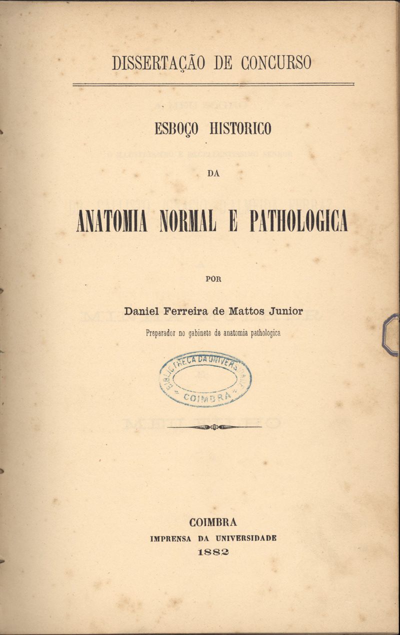 Esboço histórico da anatomia normal e pathologica / Daniel Ferreira de Mattos Junior