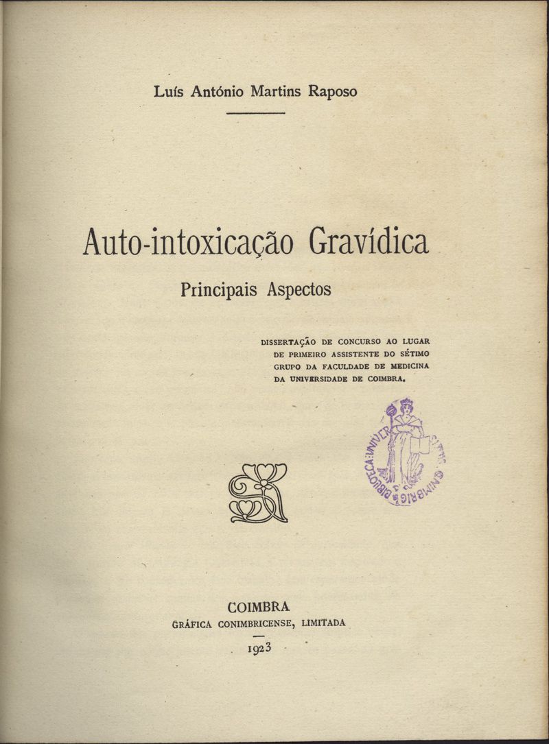 Dissertação de concurso ao lugar de primeiro assistente do sétimo grupo da Faculdade de Medicina da Universidade de Coimbra.