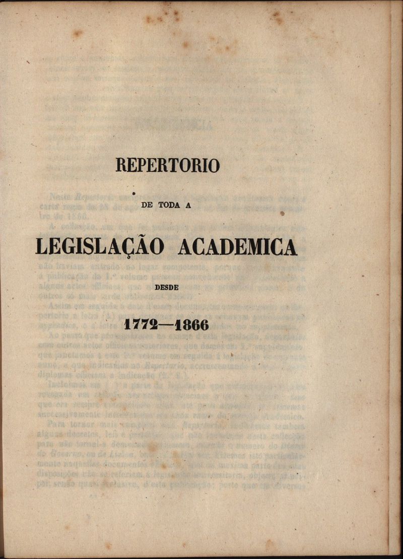 Legislação académica : 1864-1866 e Repertório de toda a legislação académica desde 1772 até 1866