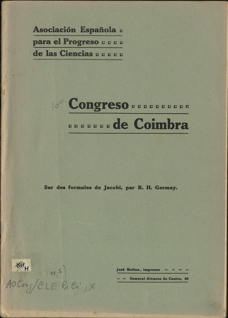 Sep. de: Congreso de Coimbra, Sección Iª - Ciencias matemáticas.