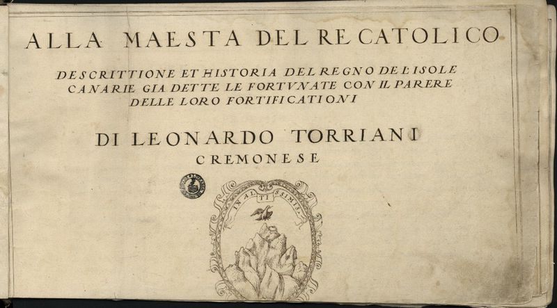 Datação estabelecida com base em dados extraídos do texto, bem como na cronologia das viagens de Torriano que, entre 1584 e 1594, residiu nas Ilhas Canárias, ao serviço de Filipe II, a quem dedica esta obra.