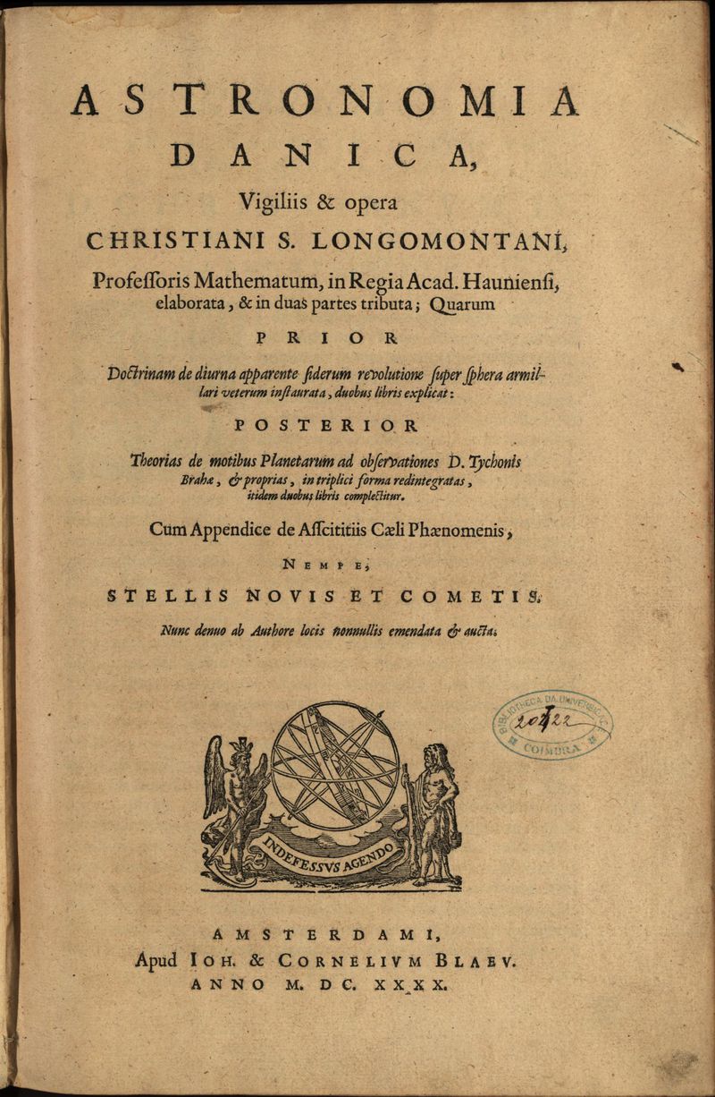Astronomia Danica, vigiliis & opera Christiani S. Longomontani ... elaborata, & in duas partes tributa : quarum prior doctrinam de diurna apparente siderum revolutione super sphera armilari veterum instaurata, duobus libris explicat; posterior theorias de motibus planetarum ad observationes D. Tychonis Brahae, & proprias, in triplici forma redintegratas, itidem duobus libris complectitur. Cum appendice de Asscititiis Caeli Phaenomenis, nempe Stellis novis et cometis