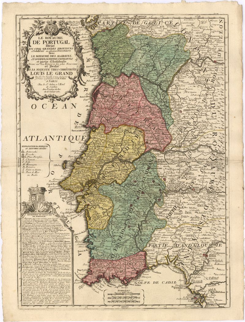 Le Royaume de Portugal divisé en cinq grandes provinces et subdivisé en plusieurs territoires avec le Royaume des Algraves. Le stram adovra espagnol et partie d'Andalousie dressé sur les memoires les plus nouveaux