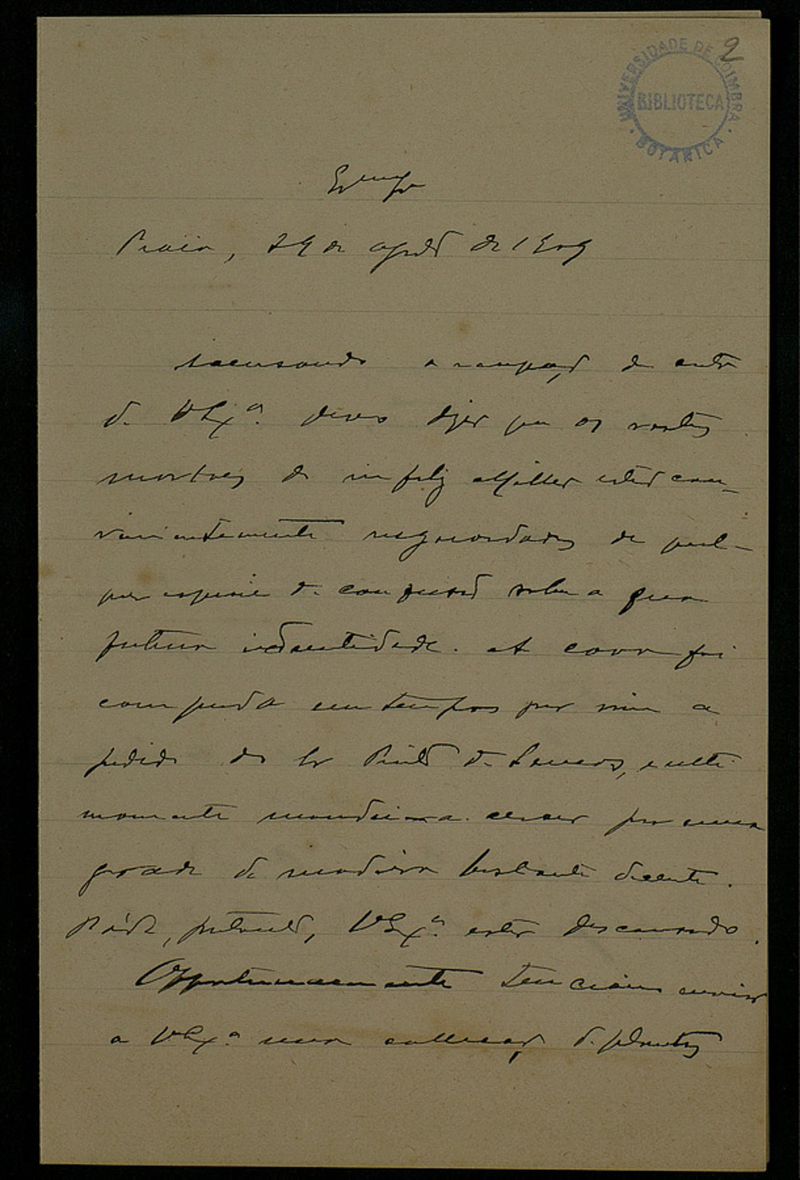 [Carta], 1909 Ago. 29, Praia, [a Júlio Henriques, Coimbra]