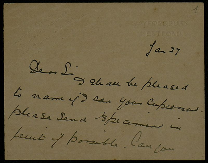 Postcard, [19--] Jan. 27, Bayfordbury, [to Júlio Henriques, Coimbra]