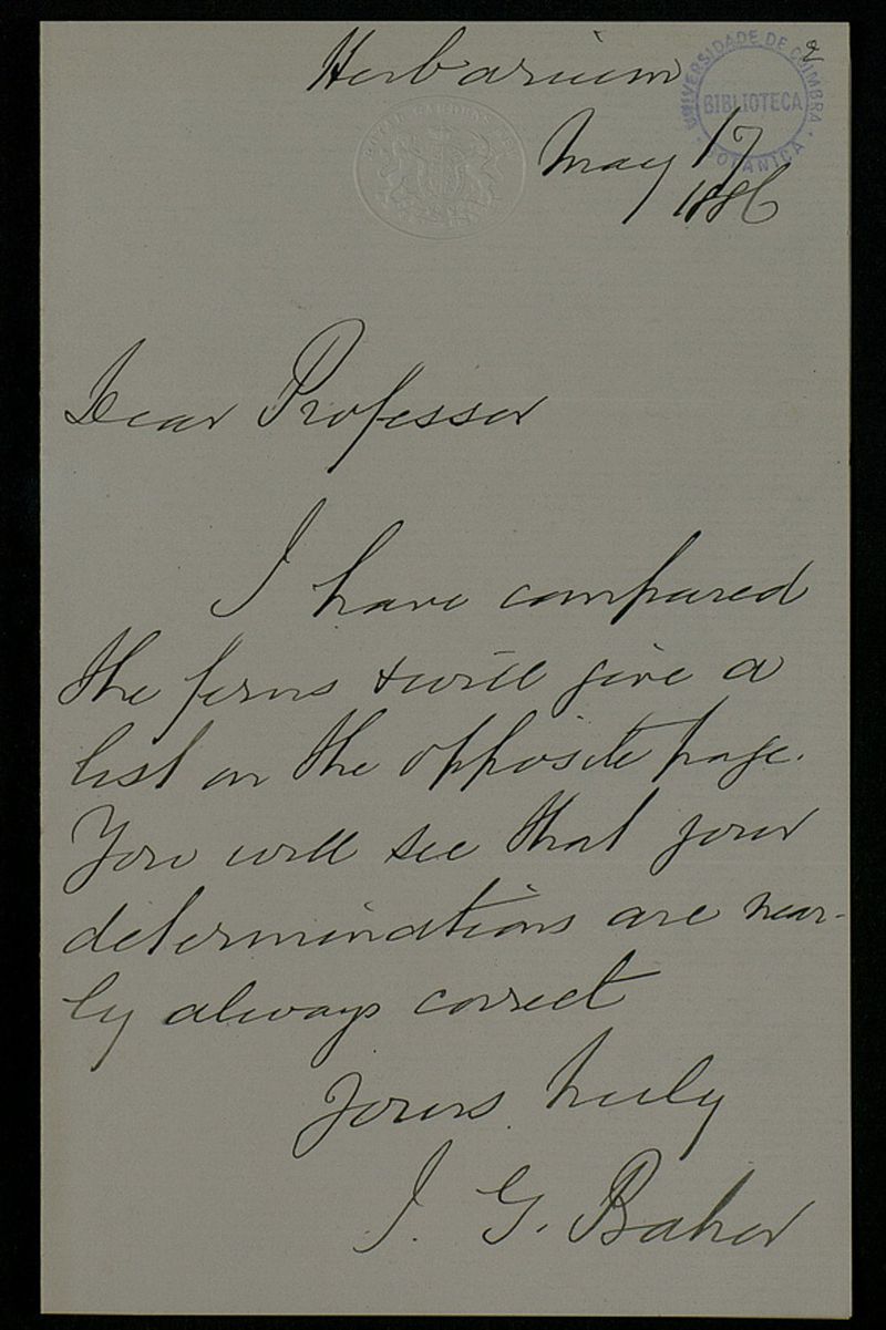 [Letter], 1886 May 17, Kew, [to Júlio Henriques, Coimbra]